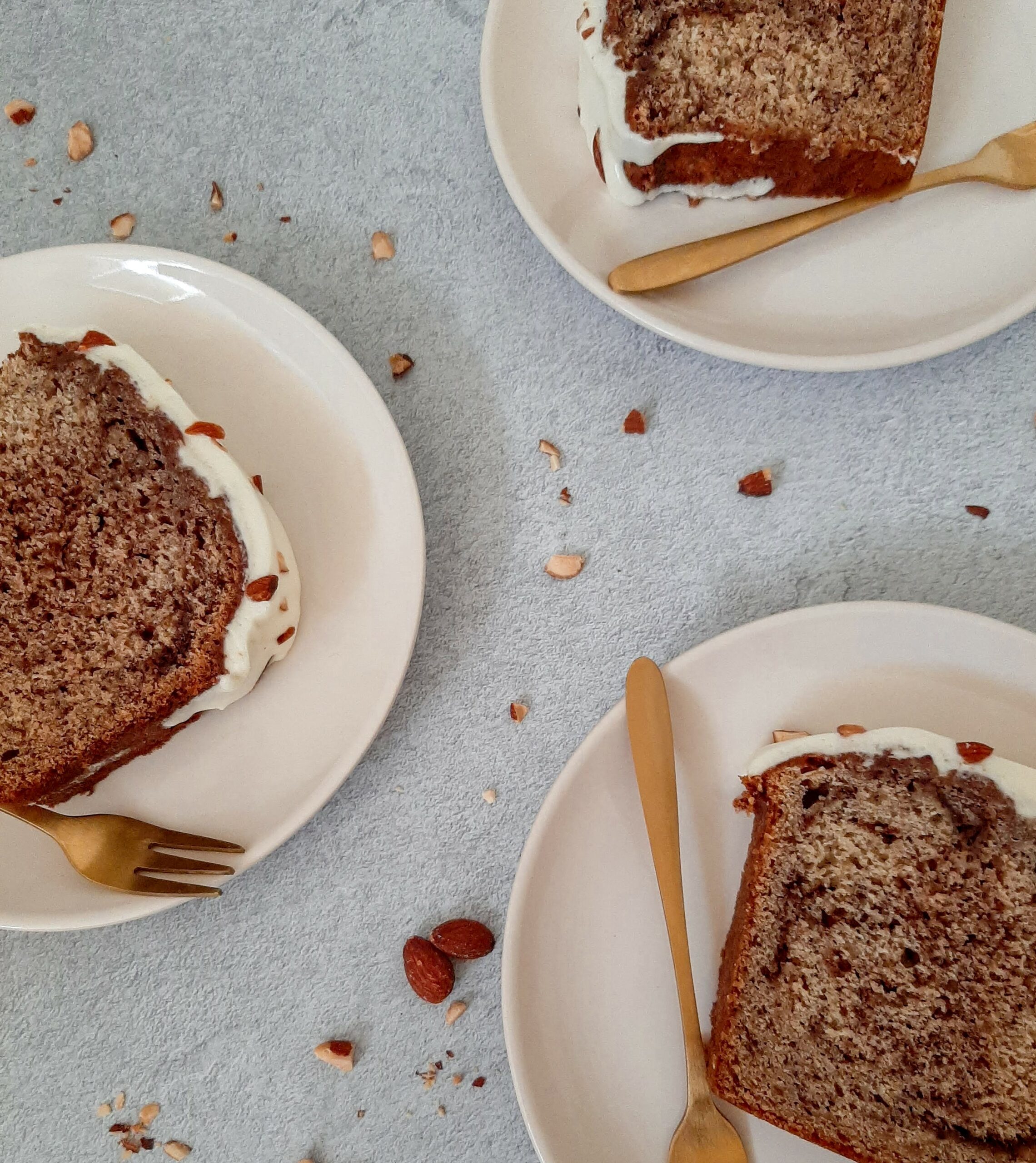 Ik bakte het bananenbrood in een tulband, maar je kunt het uiteraard ook in een gewoon bakblik bakken. Mijn tip om het brood na afloop goed uit de tulband te krijgen? Vet de tulbandvorm in en bestuif deze lichtjes met bloem. Zet de vorm vervolgens in de koelkast terwijl je het beslag maakt. Op die manier komt een tulband bij mij altijd heel uit de vorm!